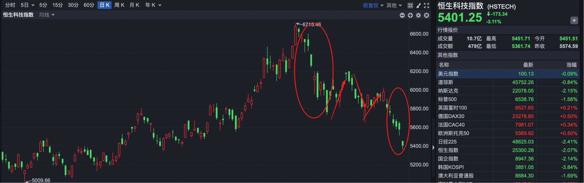 今天(11月21日)上午,不论A股还是港股,都遭遇了比较大幅度的回撤。沪指一度跌了近90点,港股跌得更凶,尤其恒生科技指数,跌幅一度超过3%。